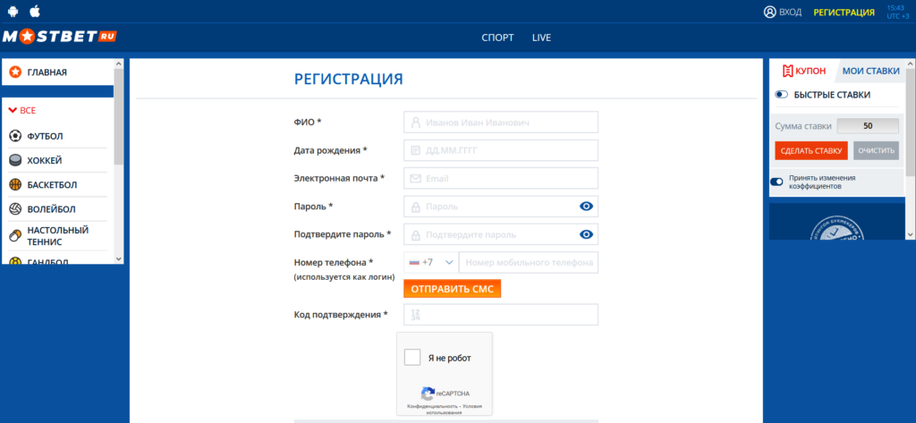 Регистрация в Мостбет проходит без проблем. В конторе присутствует разделение на регистрацию и верификацию. По этой причине, личные данные пользователя придется вводить 2 раза, что, естественно, не вызывает удобство для клиентов.